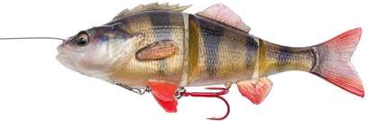 Силікон Savage Gear 4D Line Thru Perch - неймовірно реалістична імітація окуня виготовлена шляхом 3D-сканування, за рахунок чого вдалося домогтися детального опрацювання кожної частини тіла приманки. Сегментоване тіло окуня здатне вальяжно грати на самих повільних проводках. За рахунок бічних реалістичних плавників Perch має яскраво виражене спокусливе Роллінгом тіло (похитує бочками), тим самим провокуючи пасивного і обережного хижака на клювання. Оснащується приманка ковзкою системою LineThru (коли поводок приманки проходить через тіло приманки), завдяки чому, при клюванні хижака, приманка менш травмується. Силікон Savage Gear 4D Line Thru Perch має спеціальний канал для аттрактанта, а також канал для брязкальця. Приманка змонтована на поводочному матеріалі Carbon49 Line Thru і оснащена гострим трійником червоного кольору Y-Treble. Для більшої ефективності приманка оброблена спеціальним аттрактантом. У наших умовах лову вона підійде для лову трофейної щуки в стоячих водоймах.