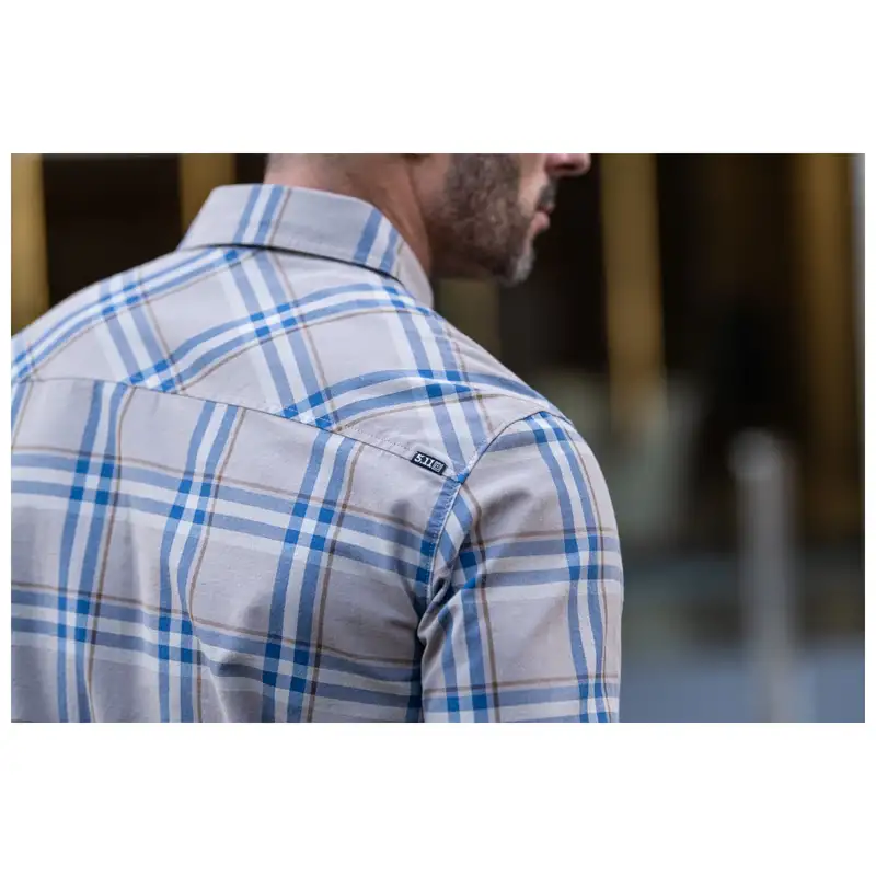 Конструкція передбачає дві нагрудні кишені на кнопках з вертикальним входом. На плечах передбачені спеціальні дублюючі накладки, які не мають плечового шва. Комір також виконаний з подвоєного матеріалу, що у комбінації з плечовими накладками забезпечує кращу зносостійкість виробу та додатковий захист від натирання при носінні рюкзака або сумки. Замість звичайних ґудзиків в сорочці Gunner Plaid Shirt використані кнопки за технологією RAPIDraw™, щоб у критичній ситуації швидко отримати доступ до спорядження на поясі або до футболки-кобури.