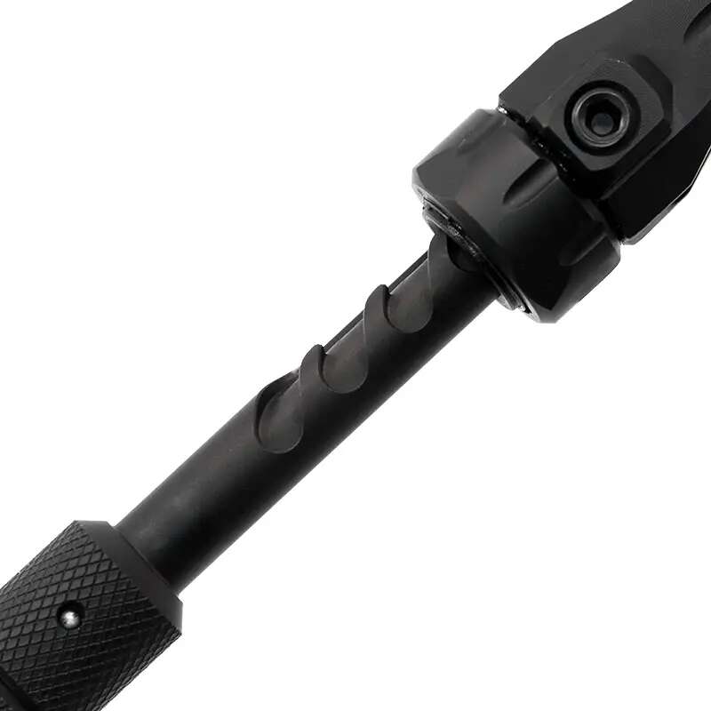 Трипозиційні складні сошки Leapers UTG Pro TBNR регулюються по висоті та мають суцільнометалевий замок (натисніть на стопор і потягніть вниз замок, зафіксуйте ніжку у потрібному положенні) для комфортного використання зброї у різних положеннях. Висота ніжок регулюється від 18,6 до 23,1 см. Ніжки оснащені новою запатентованою технологією Guided: просто потягніть ніжки за годинниковою стрілкою і зафіксуйте необхідну висоту поворотом проти годинникової стрілки. Ніжки спіралеподібної форми, з автоматичним складанням та з фіксатором. Система регулювання ніжок дозволяє легко висувати та прибирати їх. Низькопрофільне кріплення Picatinny має базу, яка обертається, на 360 градусів з нахилом 19° (вперед, назад, вліво і вправо), що дозволяє оперативно змінювати напрямок стрільби під будь-яким кутом. Базу можна зафіксувати у певному положенні за допомогою спеціального стопора. Наконечники ніжок - знімні, сумісні з більшістю відомих фірм, що мають QD-кріплення. Їх можна замінити іншими наконечниками для більш комфортного використання на конкретній місцевості. Вся конструкція сошок виконана з анодованого алюмінію 6061-T6 та 7075-T6 чорного кольору, а фіксуючі компоненти - сталеві.