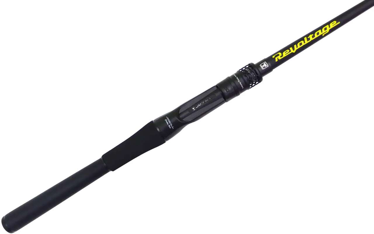 Спінінг Jackall Revoltage - серія коротких вудилищ для лову хижака мультиплікаторною котушкою, які відрізняються високою функціональністю. З його допомогою можна однаково ефективно ловити різними методами і стилями, як джигом, так і твічінгом. Виробник приділив багато уваги конструкції бланка, в залежності від моделі, зробивши як класичні з порожнистою вершинкою, так і спеціалізовані з монолітною. Поєднання карбону різної модульності дозволяє зробити роботу спінінга максимально пристосованою під певні умови, наприклад, делікатно анімувати приманку і створювати потужний упор під час виважування риби. Для створення такої конструкції використана технологія GP-Booster, при якій частини бланка збираються не внахлест, а встик, що дозволяє зберігати рівномірність вигину без провалів і жорстких переходів. Завдяки цьому підвищується міцність і чутливість вудилища, що цінується усіма рибалками. На бланку встановлені сучасні пропускні кільця Fuji K-Type, що мають невелику масу і не схильні до заплутування шнура. Котушкотримаяч, в поєднанні з ручкою з EVA, має ергономічну конструкцію. Збільшений діаметр бланка в цій частині виконано за технологією B2-MX, при якій значно підвищується тактильна чутливість за рахунок великого діаметру і тонких стінок, але зберігається його міцність.