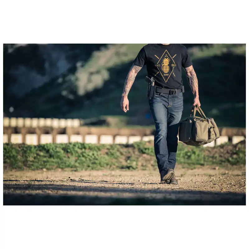 "Довговічність і функціональність" - це друга назва тактичної сумки "Range Ready Bag". Вона виготовлена з поліестеру 600 деньє, що забезпечує довгий час служби сумки. Високоміцні транспортні ручки (прошиті потрійним швом) і плечова лямка не підведуть Вам ніколи навіть при повному завантаженні сумки. У нижній частині сумки встановлені пластикові вставки, які захищають її від протирання в уразливих місцях при тривалому використанні. Всі кишені мають ущільнюючу прокладку, яка захищає зброю і вміст кишень від зовнішніх пошкоджень. Всі застібки "блискавки" від компанії "YKK®". Приємні дрібниці даної сумки - це наявність спеціального підсумка для питної фляги (пляшки з водою), а також наявність внутрішньої сумки-вкладиша, яка використовується для оперативного транспортування пістолета і боєприпасів по стрільбищу.