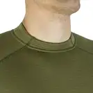 Комір реглана має подовжену задню частину для захисту шиї від вітру та холоду. Рукави добре облягають руки та мають оптимальну довжину, щоб комфортно використовувати термобілизну з верхніми шарами одягу та аксесуарами, такими як годинник і тактичні рукавички. Зона плечей сконструйована зі зміщеним швом для зручності під час перенесення вантажів на плечах. Пахвова зона має продуманий крій без зайвих швів, що покращує відведення вологи від тіла та висихання матеріалу. Подовжений край реглана зі спини допомагає краще зберігати тепло, не виправлятись та не задиратись під час активних рухів.