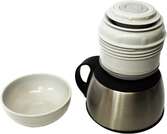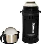 Оснащений клавішною пробкою, складними ручками і плечовим ременем для комфортного транспортування. Пластикові елементи корпусу захищають від ударів. Завдяки лазерному зварюванню і точній геометрії, корпус термоса став більш компактним і ергономічним. Технологія створення абсолютного вакууму при 1000 °C виключає деформації і підвищує надійність.