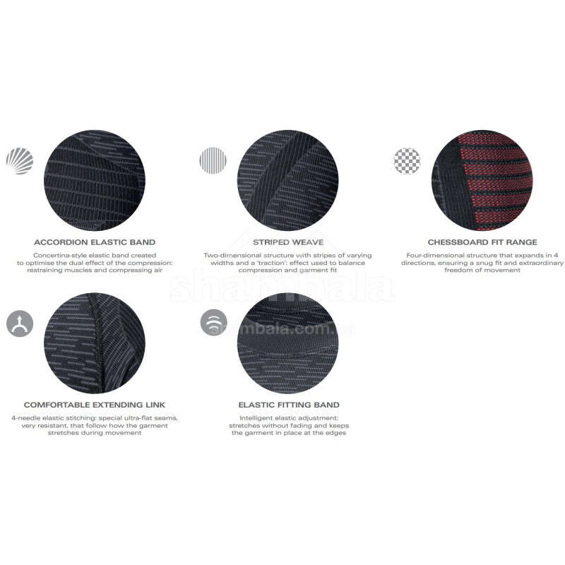 - Elastic Fitting Band – трикотажная эластичная вставка, выполняющая сразу несколько функций: фиксацию, предотвращая скручивание, улучшение отвода влаги от кожи и защиту от передавливания и натираний.