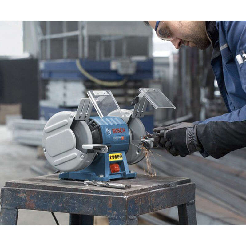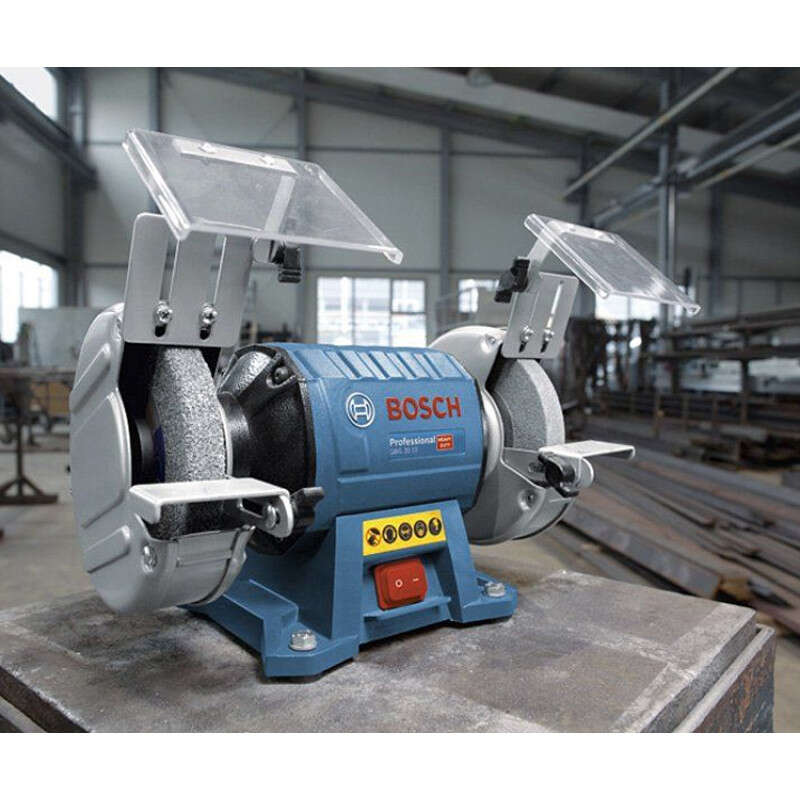 Двошпиндельне точило Bosch GBG 35-15 — потужний (350 Вт) з асинхронним двигуном, міцною основою, надійний профінструмент, що працює з двома шліфувальними дисками. Для роботи підходять шліфдиски діаметром 150 мм, шириною 20 мм, зернистістю 24, 60.