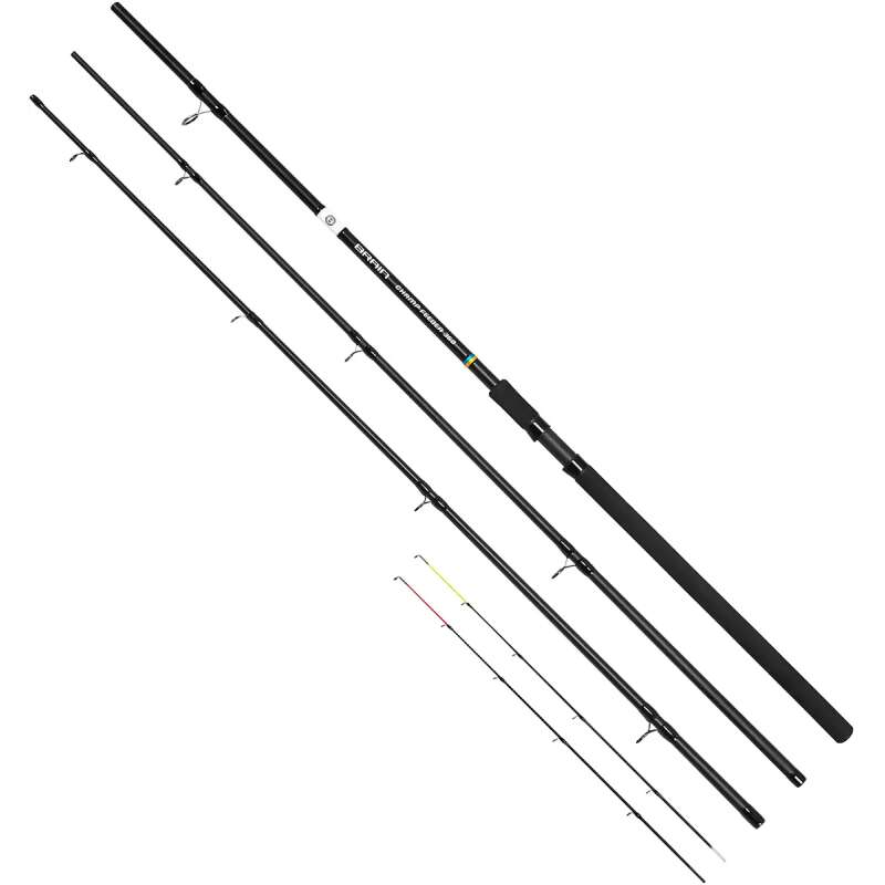 Вудилище має досить тонкий бланк, виготовлений з композитного матеріалу на основі вуглеволокна. Це робить його відносно легким та здатним витримувати високі навантаження. У комплекті з фідером йдуть дві змінні вершинки - по одній зі скловолокна та карбону, здатні розширити можливості снасті під час лову в різних умовах. На бланку встановлені універсальні пропускні кільця зі вставками SiC, які добре працюють як з моножилками, так і плетеними шнурами. Надійний котушкотримач гвинтового типу та ручка з пінистого матеріалу EVA відмінно поєднуються з недорогим вудлищем, роблячи його доступним та практичним.